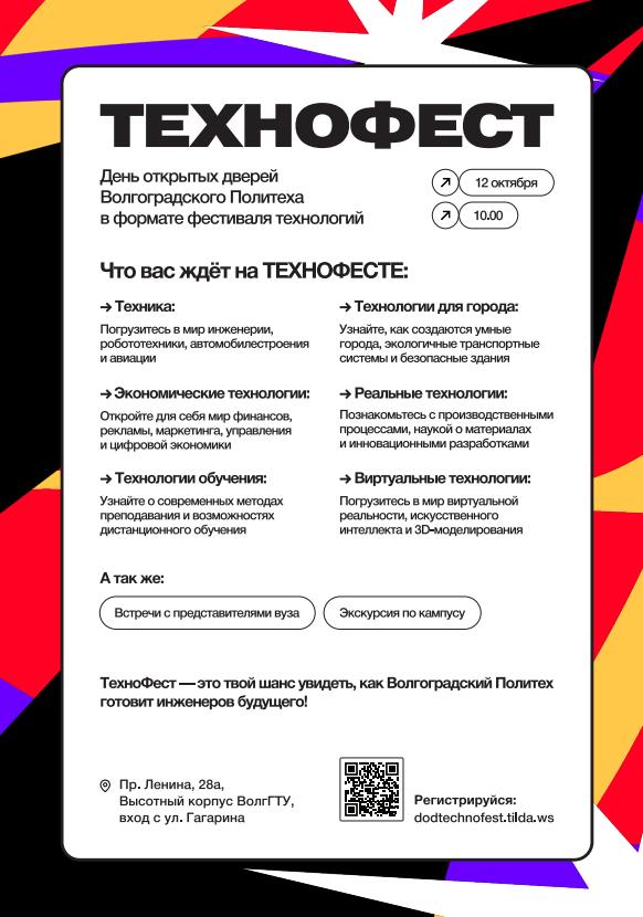 ТехноФест - это ваш шанс увидеть, как Волгоградский Политех готовит инженеров будущего!
